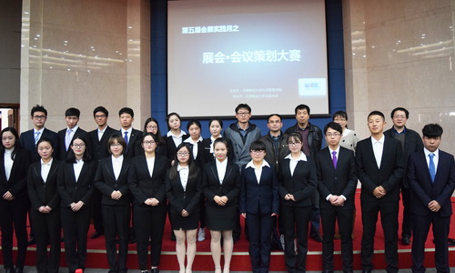 11 月 4 日,公共管理学院第五届会展实践月之展会·会议策划大赛决赛在图书馆三楼国际报告厅举行。会展经济与管理系主任姜仁良,党支部书记赵伯艳,专业老师李勇军、李晨、严敏、杜凤霞、王利刚,辅导员沈洁出席并担任评委。200 余位同学参加了本次活动。
